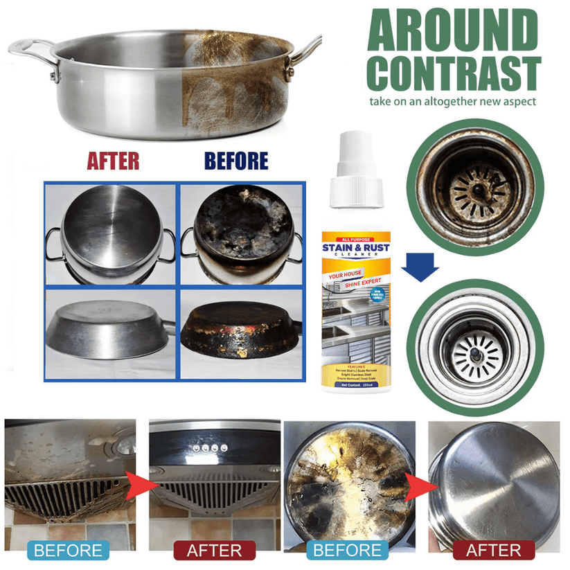Looking for a powerful, all-in-one cleaning solution for your home? Our All-Purpose Stain Cleaner & Derusting Spray (Pack of 2) is the ultimate cleaning combo for your kitchen, bathroom, and household surfaces. Designed to eliminate oil, grease, stains, rust, and grime effortlessly, this multipurpose cleaner helps you maintain a sparkling clean home with minimal effort.